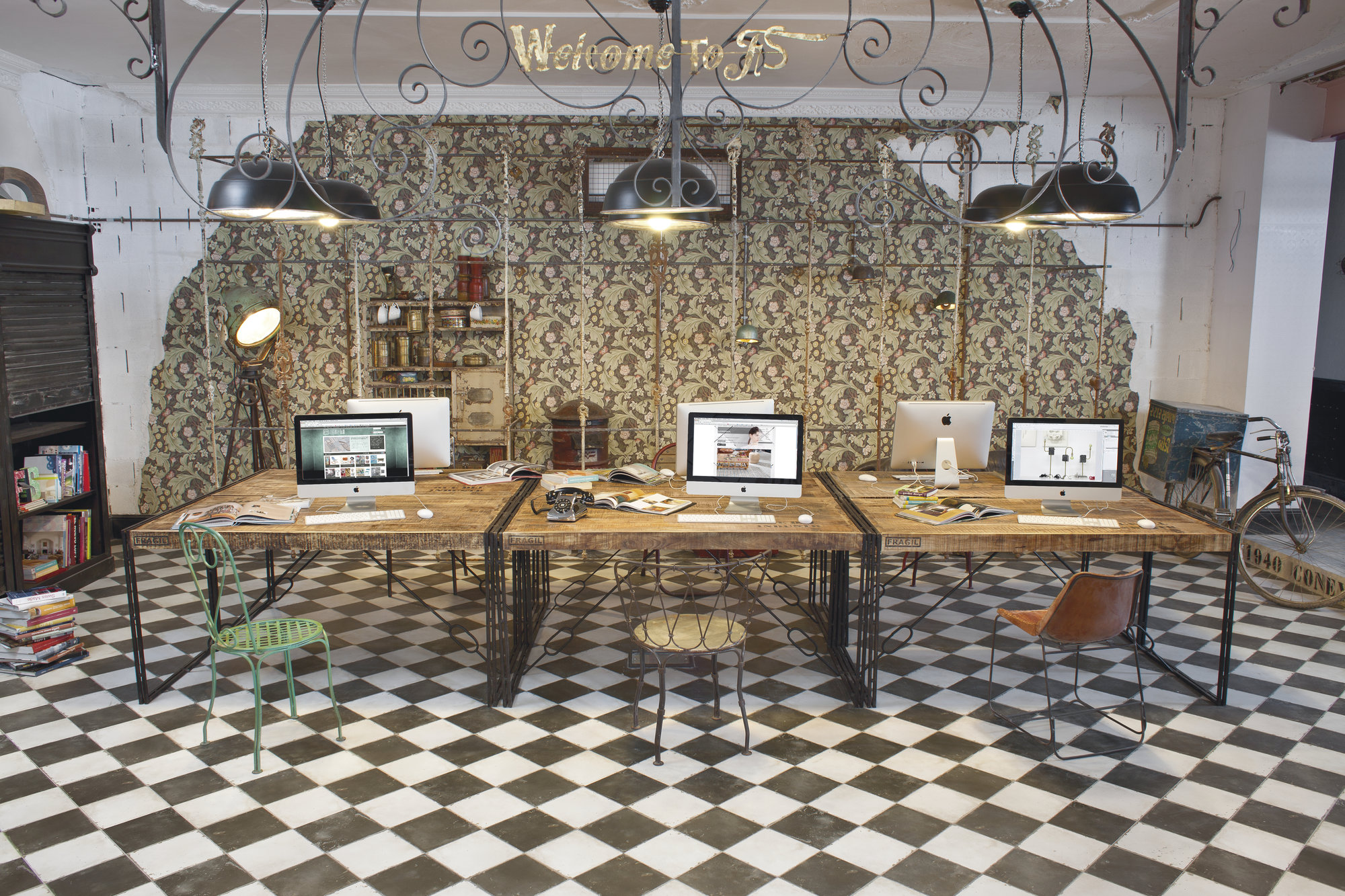 Für ihn ist der Vintage-Stil die Manifestation der postmodernen Kultur. Ein nostalgischer Blick auf funktional dekontextualisierte Elemente der Vergangenheit ist das Leitmotiv seines Möbelhauses.