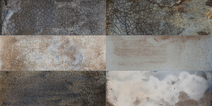 Raku, eine uralte Technik der Keramikherstellung. Bei Brenntemperatur kommen Fliesen aus dem Ofen auf Holzspäne. Der entstehende Schwelbrand erzeugt Russ, der in die Keramik eindringt und ihnen ihre ganz individuelle Textur verleiht. Diese Technik war Inspiration für diese Kollektion von Francisco Segarra.